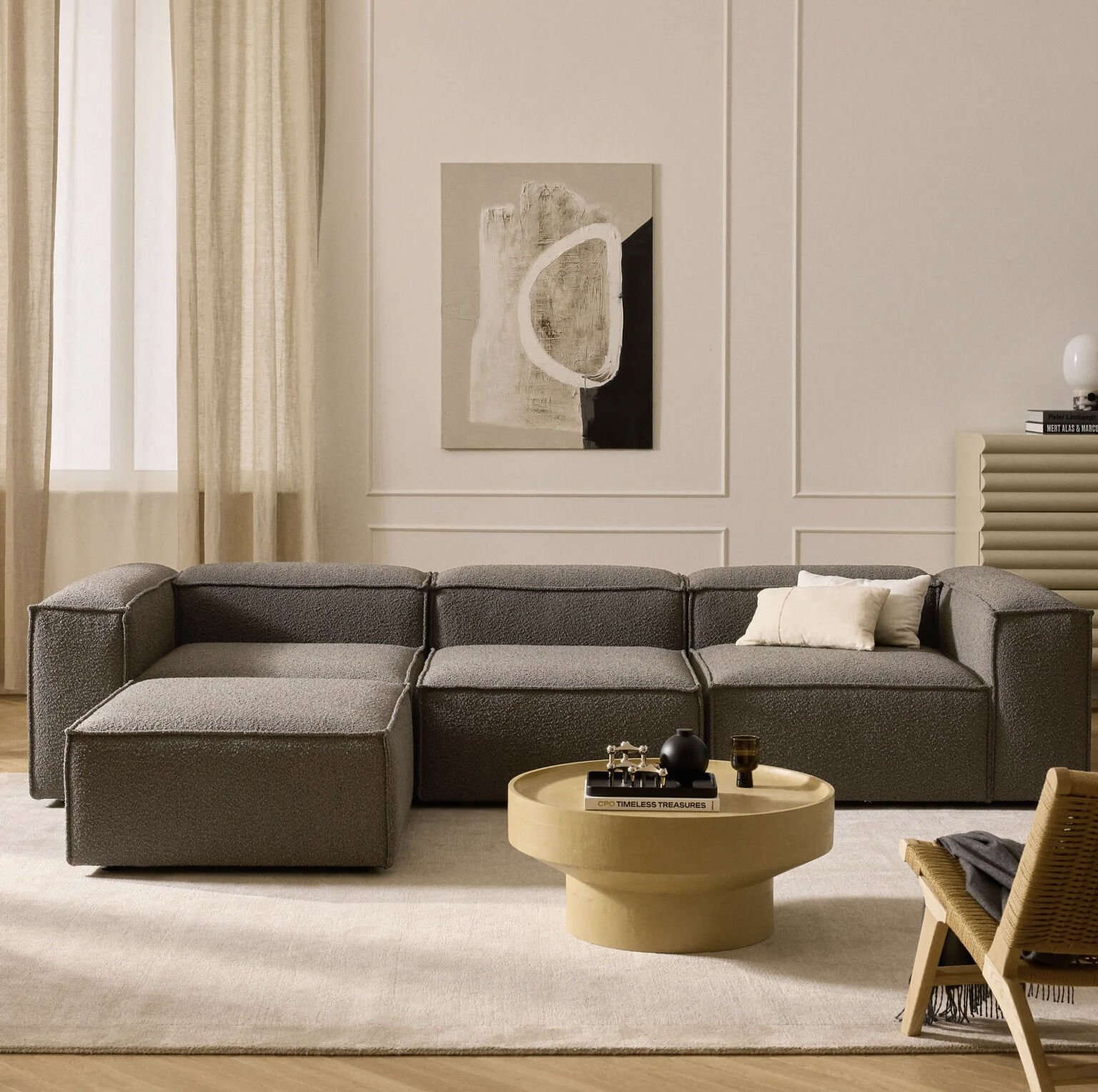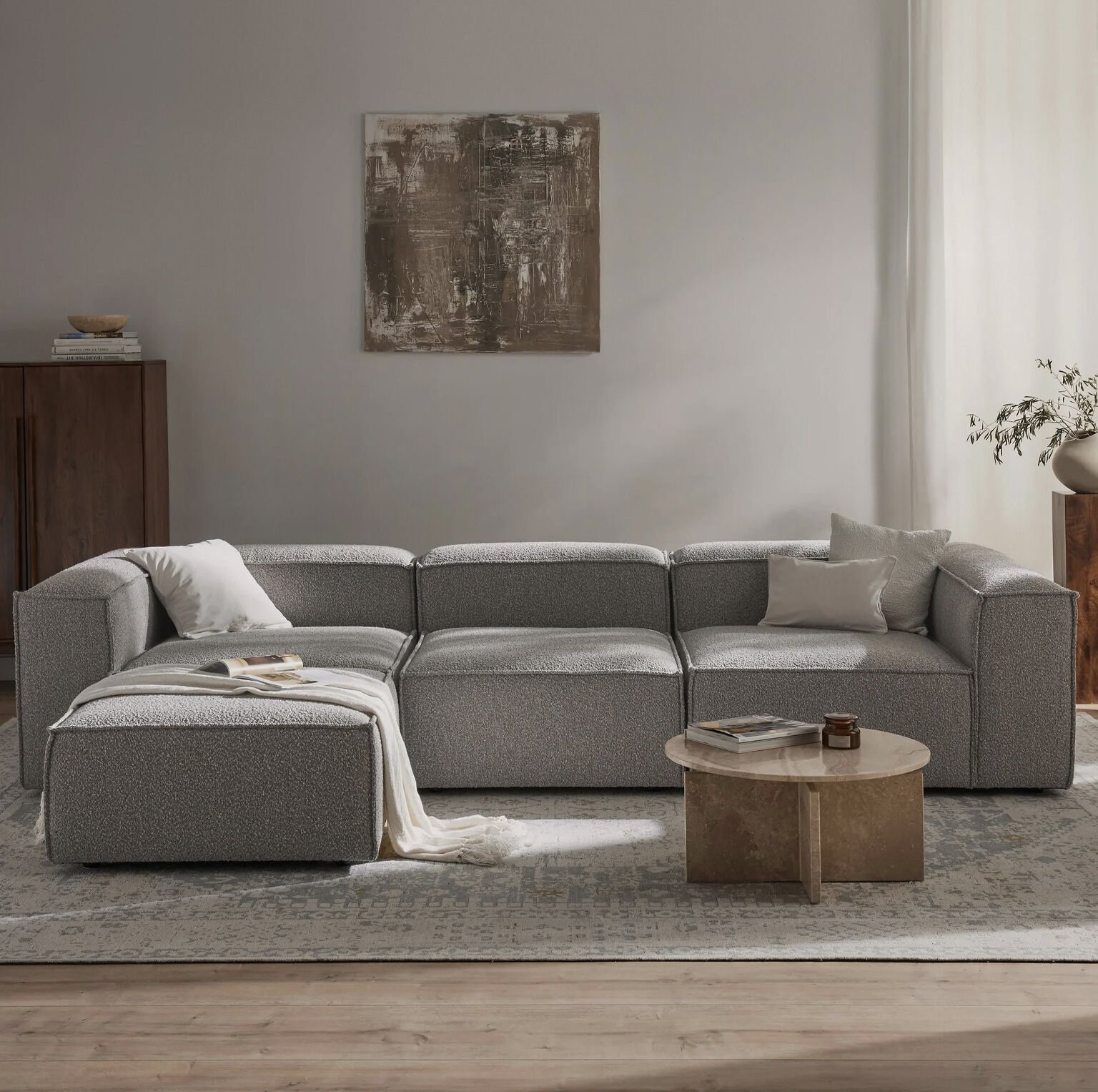 Frida 4 Modül Pofidik Modüler Kanepe L Köşe Koltuk Takımı, Teddy, 290x190 cm