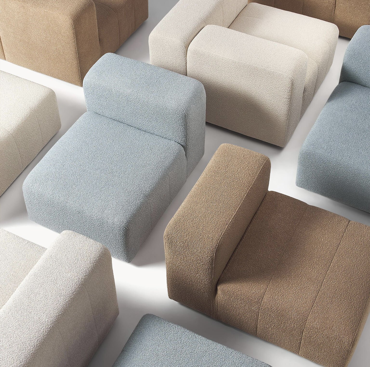 Pietro 3 Modül Modüler Kanepe Mini Köşe Koltuk, Teddy 290 cm